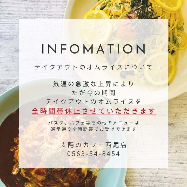 いつも太陽のカフェ西尾店をご利用いただき誠にありがとうございます
