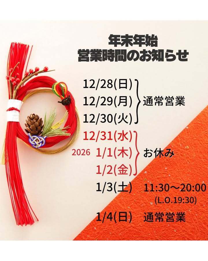 年始は1月3日(土)11:30から営業スタートいたしますので、
